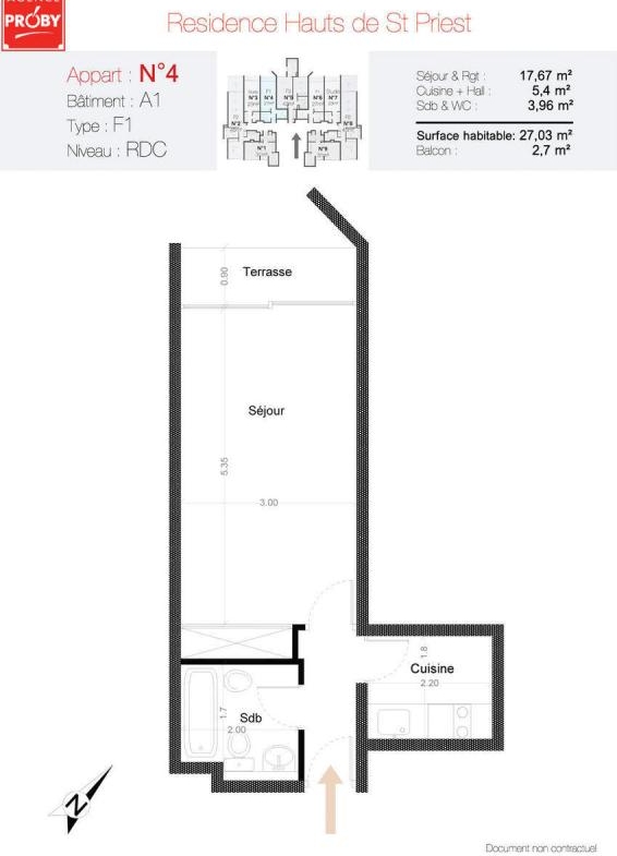 F1 27 m². Cuisine indépendante équipée.