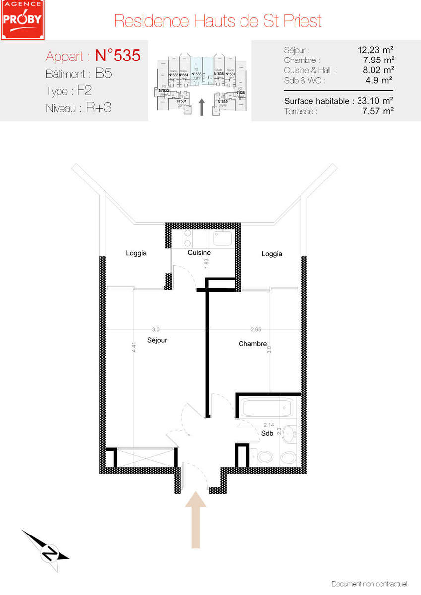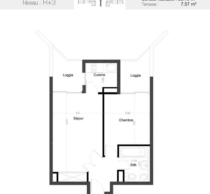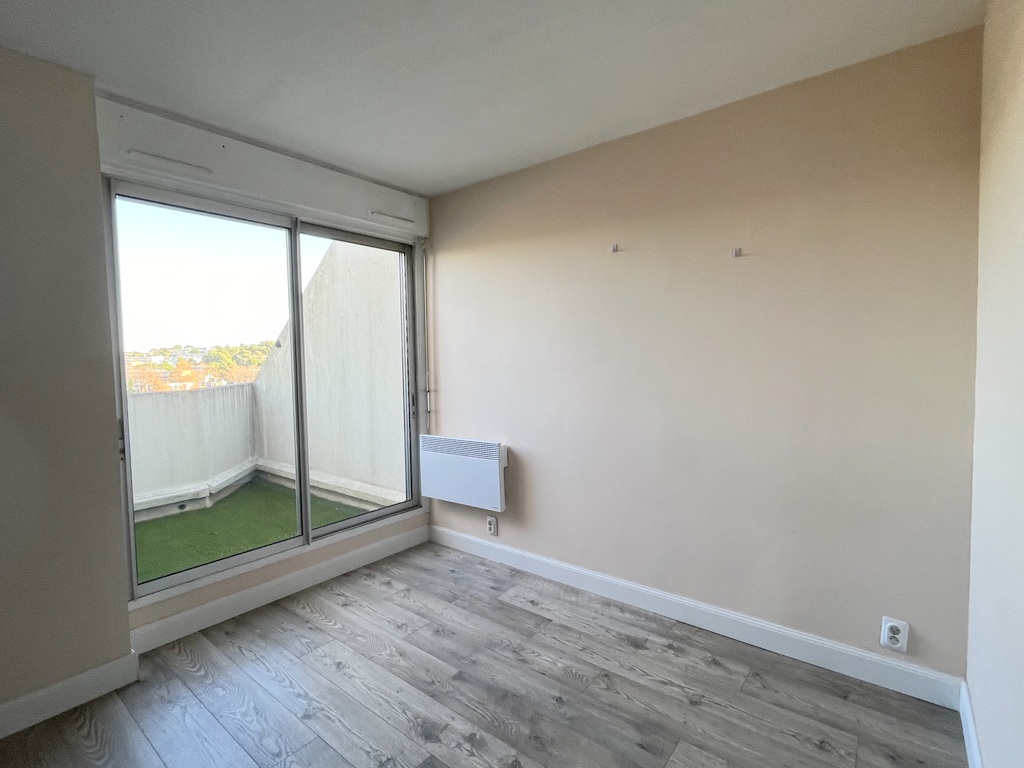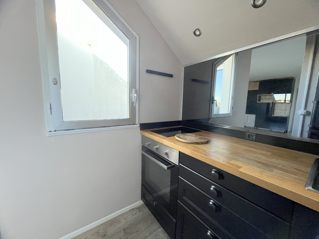 Ce bien comprend un séjour donnant sur une petite terrasse, une cuisine équipée séparée, une chambre avec placard donnant également sur une petite terrasse et une salle de bains.