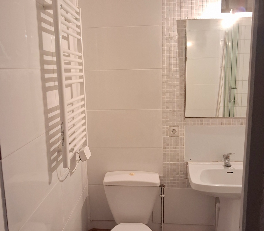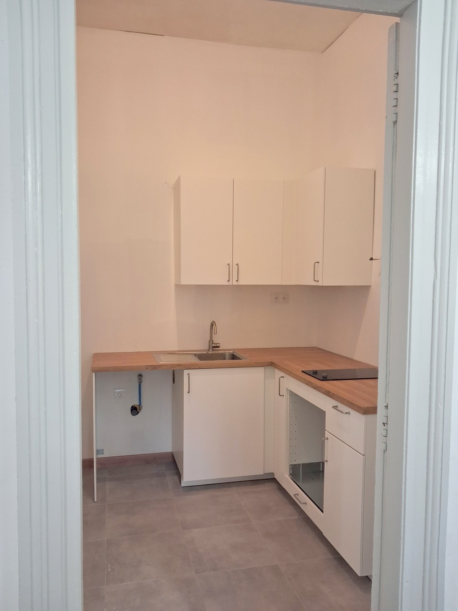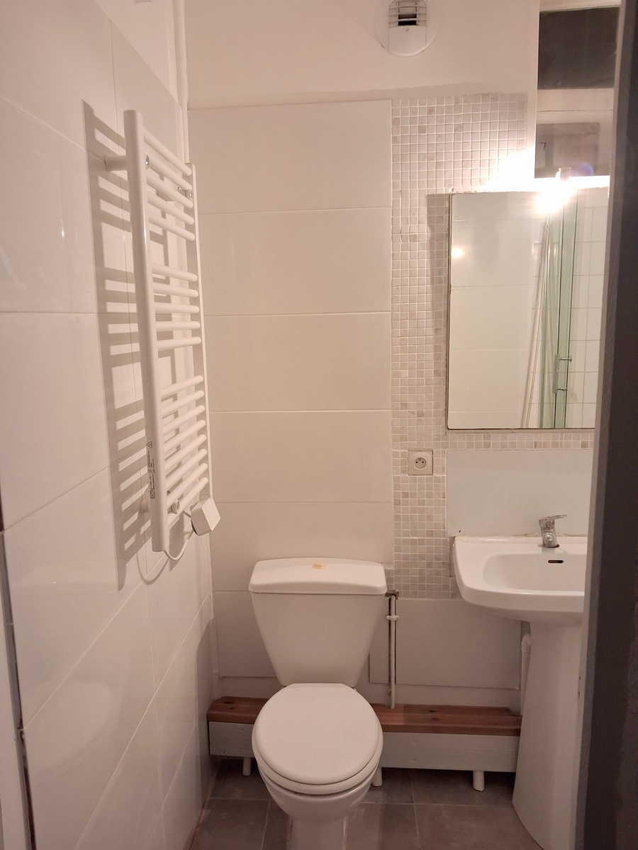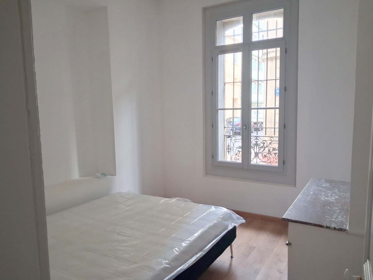 Appartement rénové comprenant 2 chambres, un séjour, une cuisine indépendante, une salle d’eau. Belle hauteur sous plafond.