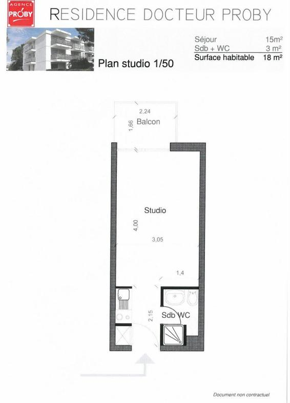 Studio 18.90 m² avec kitchenette équipée.
