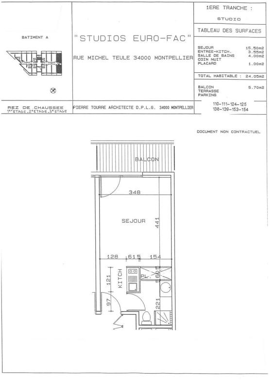 Studio 25.25m², kitchenette équipée, balcon