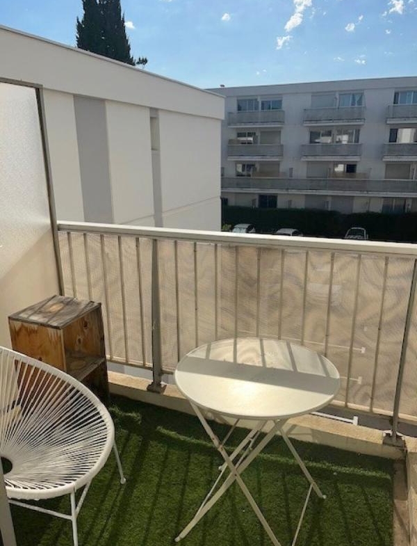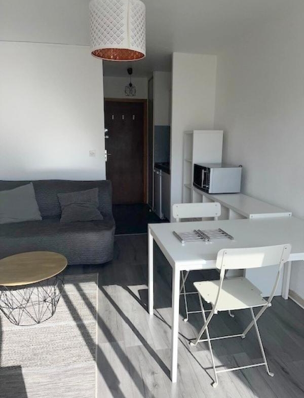 Studio meublé de 18.90 m² avec balcon, kitchenette équipée.