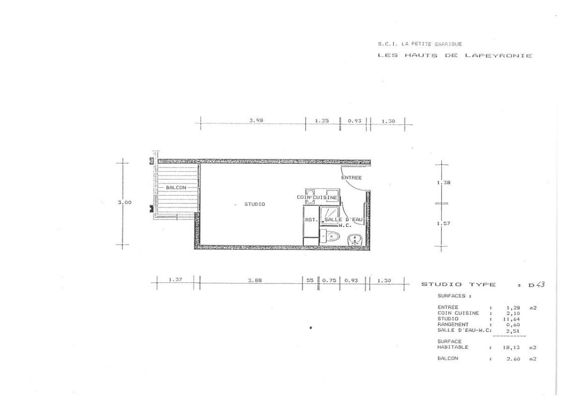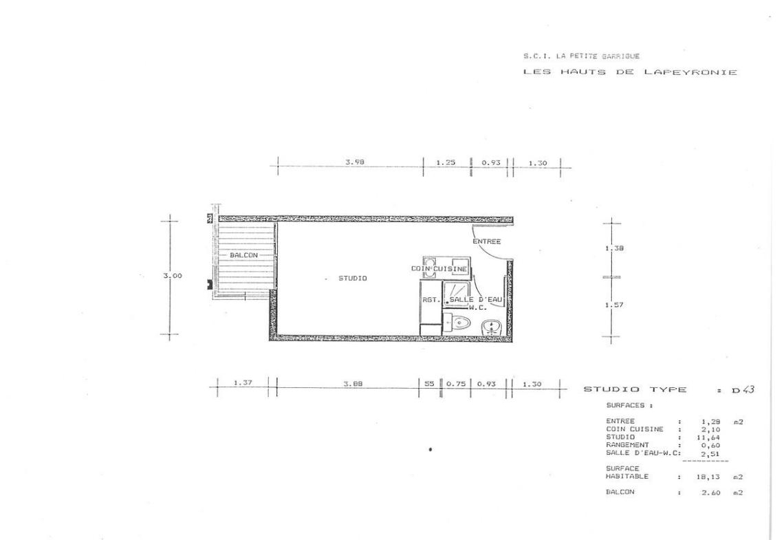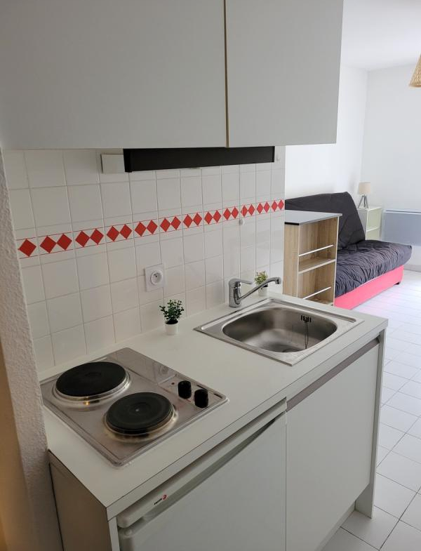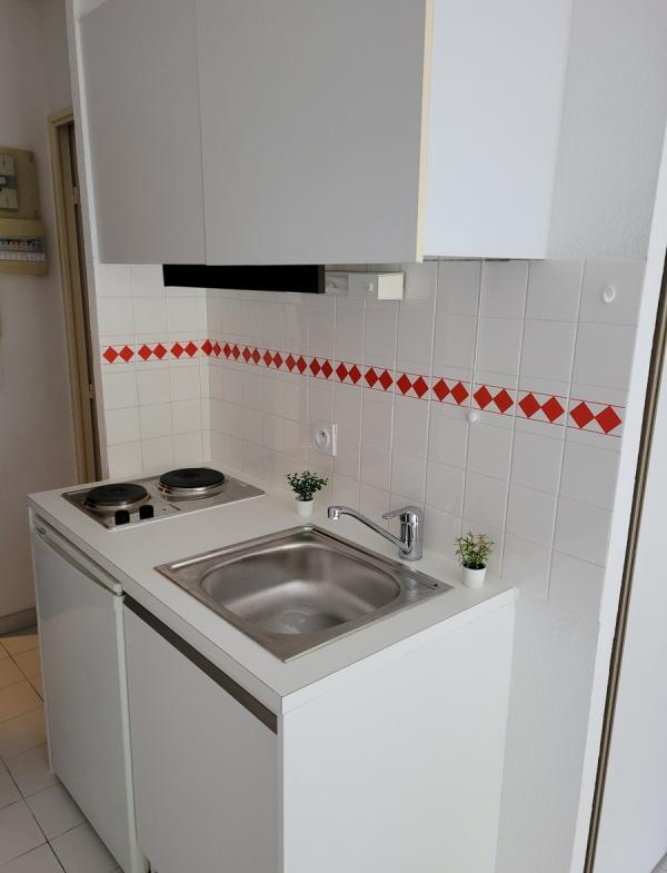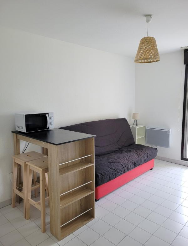 Studio meublé de 19 m² avec balcon, kitchenette équipée.