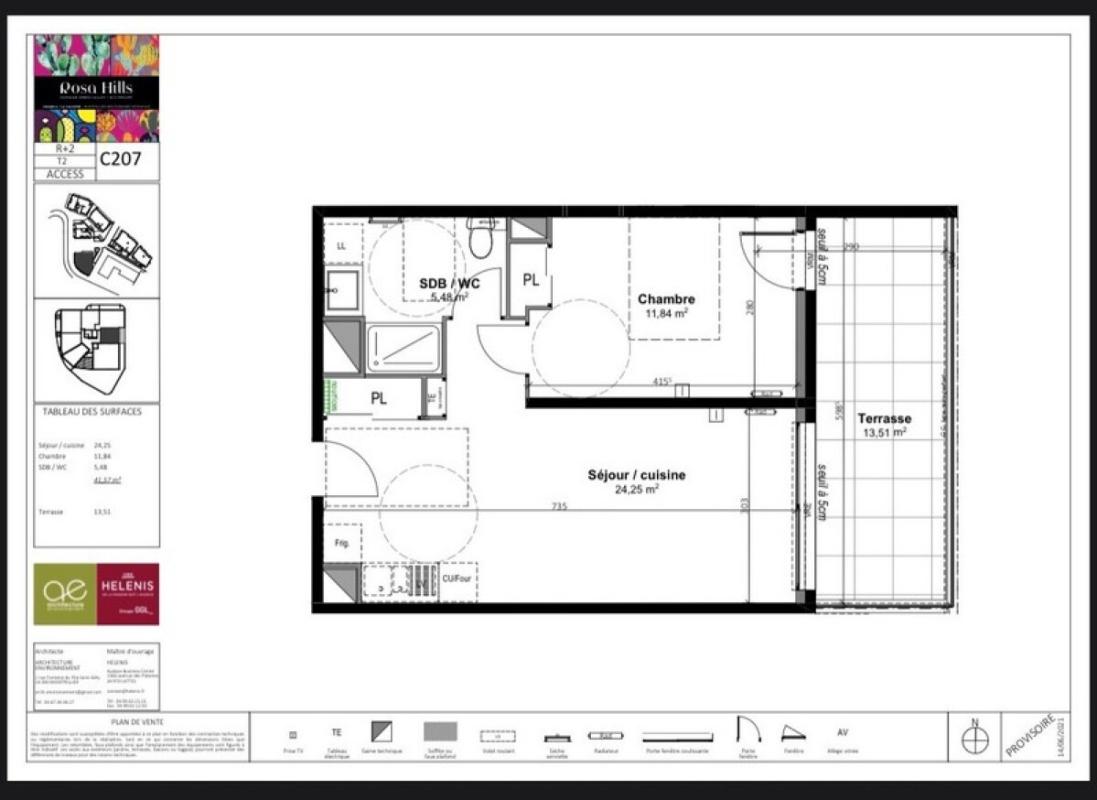 Superbe F2 meublé de 41 m² + terrasse de 13 m².